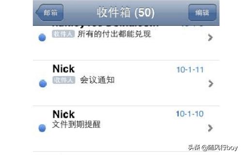 12、点击收件箱,您会看到正在显示收取邮件,如下图所示。完成这些步骤后,您就可以在iphone上使用您的263企业邮箱了。