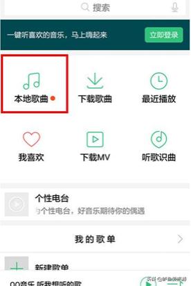 1.打开手机的QQ音乐,在主页面你可以看到有本地歌曲、下载歌曲等等,点击打开本地歌曲。