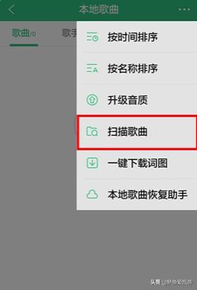 3.点击右上角的三点标识,会出现一个下拉选项,选择点击扫描歌曲开始扫描歌曲。