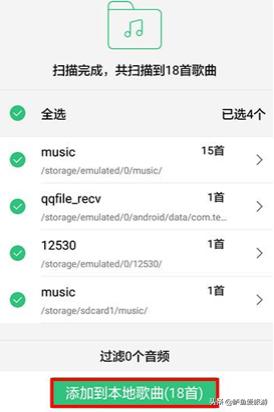 5.扫描时间不会很长,扫描完成后可以选择歌曲进行添加,添加成功后就可以选择自己喜欢的歌曲播放了。