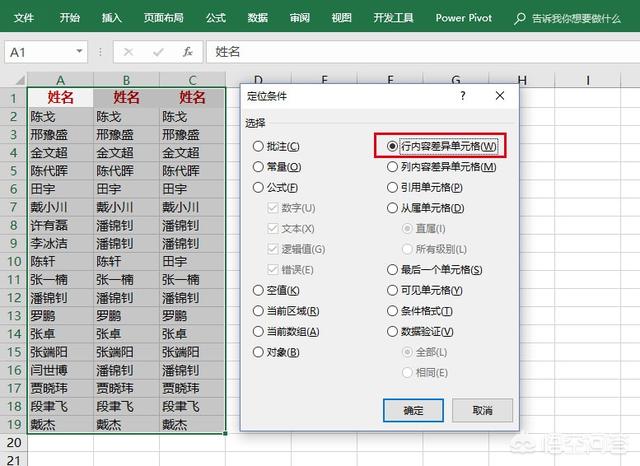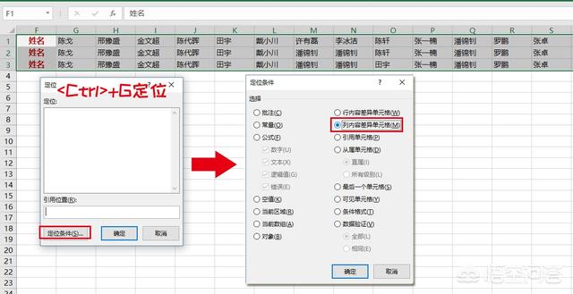 若是按行逐列对比,则只能用定位条件中的列内容差异了