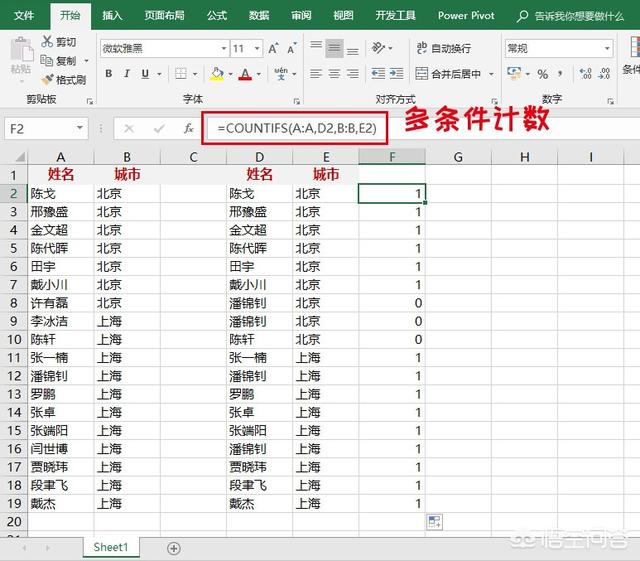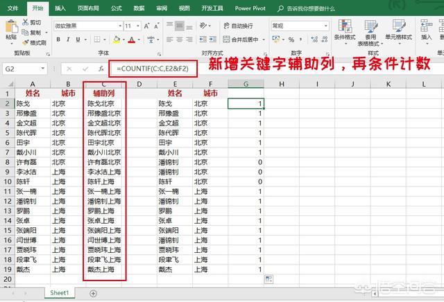 若是较为复杂的数据核对,则可以考虑借助辅助列,或者使用多条件判断函数,如Countifs