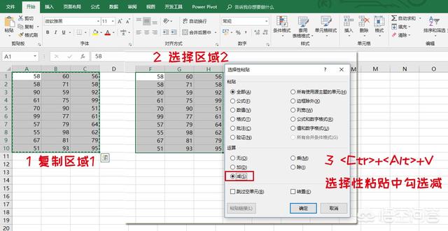 纯数字的核对,可以借助选择性粘贴中的四则运算来判断是否一致,当然,也可以简单地使用公式来判断
