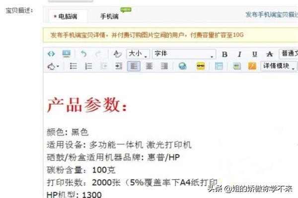 3、然后在产品描述框中,输入产品的模板描述信息。