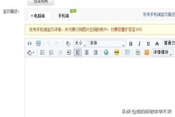1、登陆淘宝网店,点击上传宝贝.然后依次进入到宝贝描述页面。