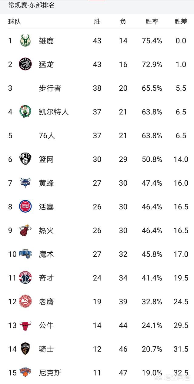 人们都说西部竞争压力大,其实东部又何尝不是呢。经过2月15日的比赛,让我们来看看东部的排名: