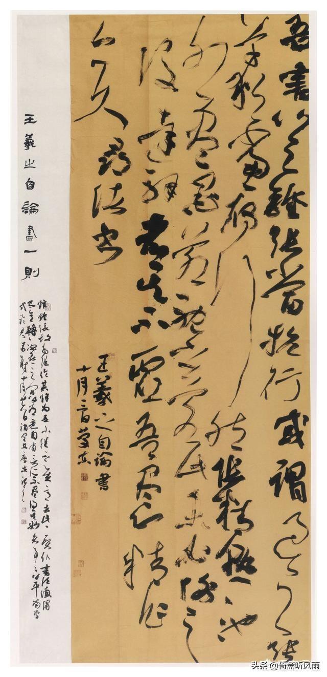 第二张,咋一看,让我联想起张旭的《古诗四帖》。不过这作品看起来乱七八糟,作者在写的时候应该没有喝醉酒,更没有处于癫狂状态,却要涂成这样,明显做作。有些草字虽然让人难以识别,但字形笔画美观,而此作品看起来丑,还有浮躁感。从作品左侧的小字可推测,作者平时写字不怎么认真。
