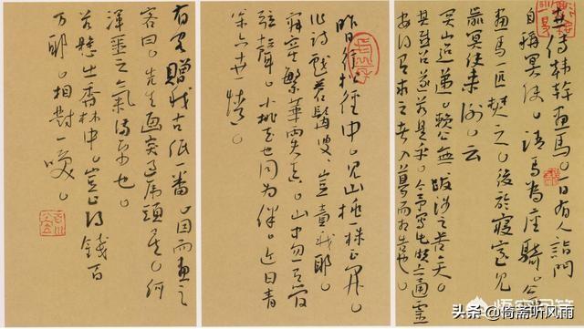 第三张,我记得“八大山人”朱耷的书法风格差不多就是这样,看来作者在书法方面的造诣还是不错的。不过刻意处理的地方太多,失去了自然书写的意味。
