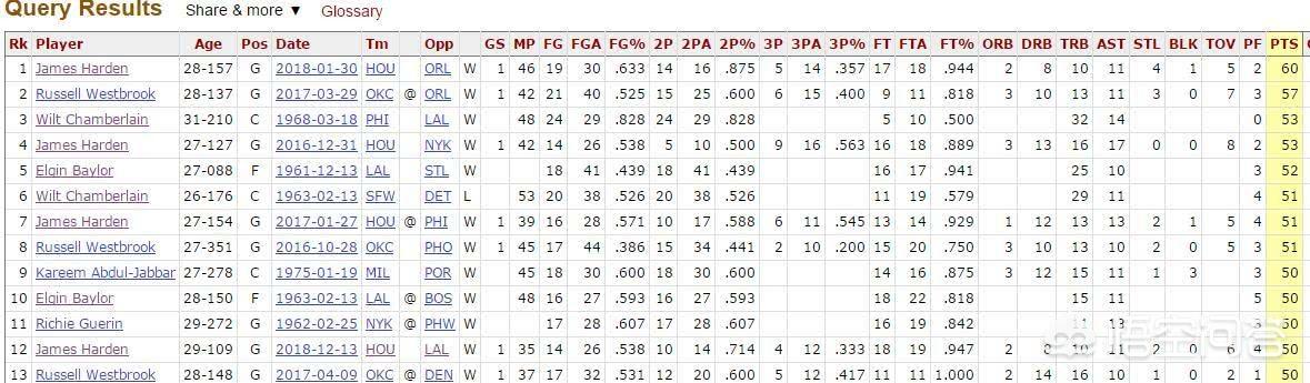 NBA历史上这6人50+三双最多的是哈登的5次,威斯布鲁克2次,埃尔金-贝勒2次,张伯伦2次,贾巴尔1次、里奇-盖伦1次,除了哈登的5次,一共也就8次。