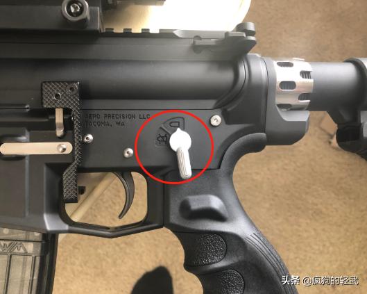 先来个最通用的,不管手枪还是步枪,持枪手拇指上方这个位置往往是最常见的保险位,毕竟用拇指就能拨到,比较方便。