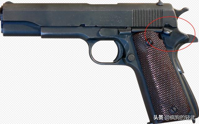 这种保险的原理不外乎是通过保险杠杆卡住击锤或者说扳机阻铁的释放,以起到保险的作用。当然,有些枪并不光是只有这种保险,比方图一的M1911除了这个拇指上方保险,握把虎口位置也有保险,只有射手握住握把时才能射击,这进一步避免了走火的可能性。