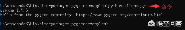 第一个示例,alien.py这个脚本,cmd切换到examples目录,运行命令“python alien.py”就行,如下: