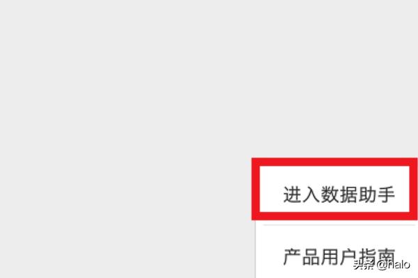 3、进入到微博数据助手的界面后,我们点击右下角的产品入口。然后上方就会跳出来两个选项,我们点击进入数据助手。