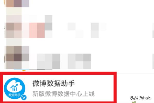 2、在进入到消息的界面后,我们需要关注一个微博的官方账号,叫做微博数据助手,然后打开它。
