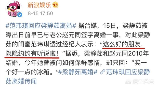 8月15号,梁静茹被传出与老公赵元同离婚,且原因还出在赵元同身上。虽然在记者求证后被否认,但不省心的闺蜜范玮琪却再次将事件升级,云里雾里暗示梁静茹与赵元同感情不和。