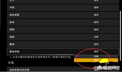 5、下拉到最下面的瞄准视角。把后面的属性改成保持,这个时候就设置完成了。