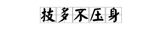 技多不压身:手里学的技术多很好,有饭碗在手,多了不会让你觉得压在身上有压力,民谚有句话说“技多不压身”是一样的。