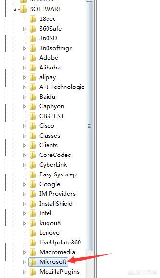5、在“Software”找到“Microsoft”。