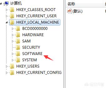4、在“HKEY_LOCAL_MACHINE”点击第五个为Software。