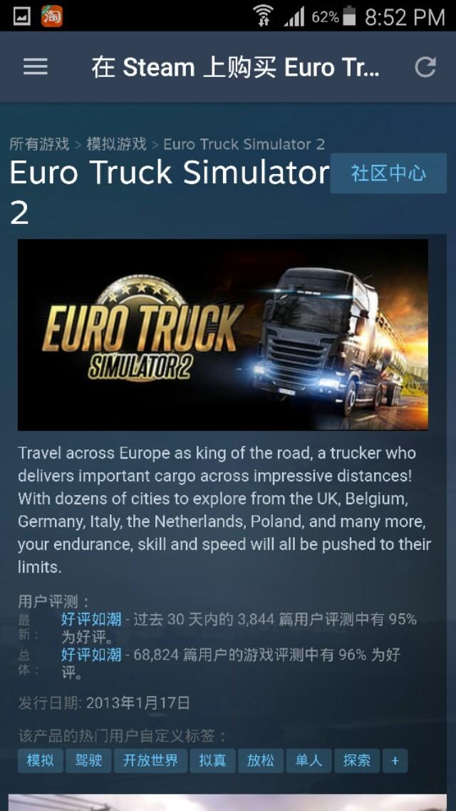 欧洲卡车模拟2-官中,有破解。可多人联机。支持方向盘,模拟平头卡车。