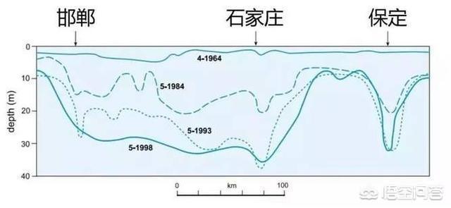 因为缺水,河北省地下水超采,地面出现的漏斗,超采额度70~80亿立方米。