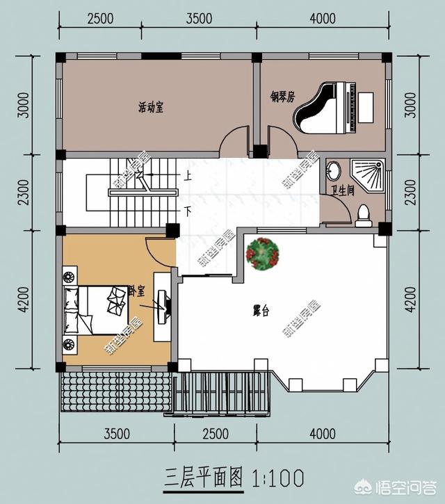 三层设了,1卧室、1钢琴房、1活动室、1卫生间、1露台