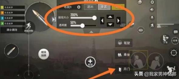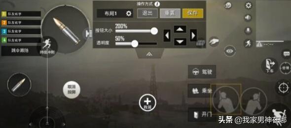 4、然后移动按钮,将开火按钮移到左上角,右边仍是探头,开镜,四指的操作分别如下:左手两手指负责移动和开火,右手两手指负责开镜和蹲下,下趴。